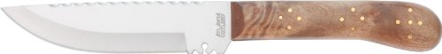 Each knife features full profile tangs and hand rubbed hardwood scales decorated with structural brass pins that pass through the tang