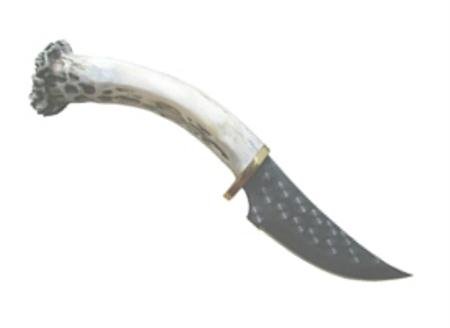 Tool Steel Series1095 Tool Steel is often referred to as "cutlery spring steel". and is well known for its use in manufacturing commercial saw blades. Between the turn of the century through World War II. this High Carbon Tool Steel was commonly used by custom knife makers (and armatures alike). because the steel was easily obtainable. (rail road spikes. car springs. saw blades). Your Grandpa probably had a knife made from 1095 High Carbon Tool Steel. This high carbon tool steel hones to a razor sharp edge (better than any stainless steel). retains its edge (better than most stainless steels). and easier to sharpen. (compared to stainless steel). We heat treat our blades in a salt batch to a 58 Rockwell Hardness. Please note this steel will discolor over time and is susceptible to rust/corrosion. We recommend keeping the blade oiled on a regular basis. but discoloration and/or rust will not affect the blade performance. Every style features deer or elk antler and each knife is accompanied with a handmade laced western style sheath. (The 8" and 10" Bowie sheaths do not have snaps and are considered "Single Action" authentic).Blade 4.5 "