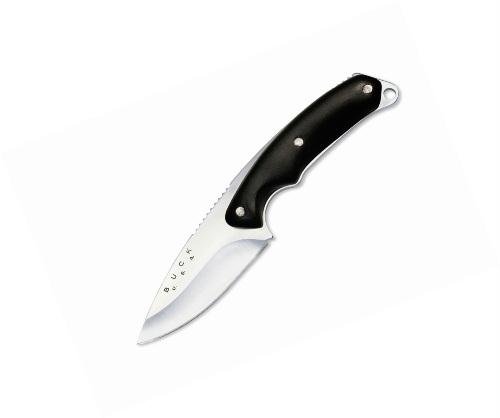 Rugged fixed-blade hunting knife with grip ridges and drop-point blade. Contoured. rubberized. non-slip handle. Sheath included.Weight: 7.2 oz.Handle Material: RubberBlade Steel: 420HCLength Overall: 8 1/2"Blade Length: 3 3/4"